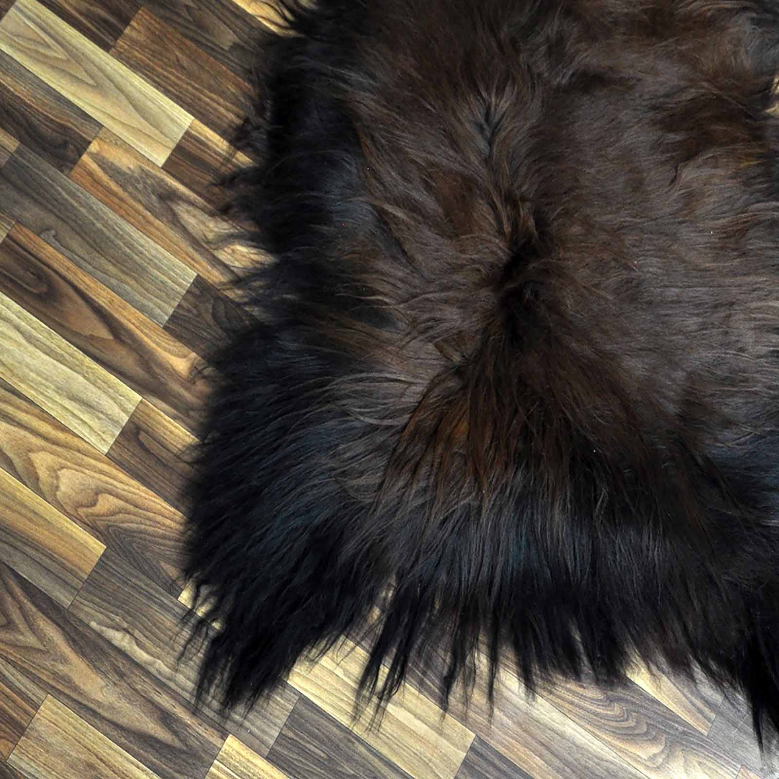 XXL ÖKO Island Schaffell schwarz braun geflammt 120x80 Feuer Kamin #8057