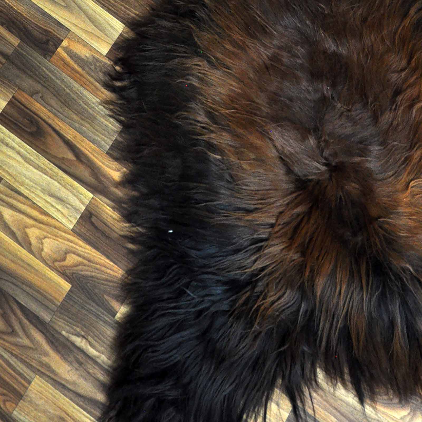 XXL ÖKO Island Schaffell schwarz braun geflammt 125x80 Feuer Kamin #9646
