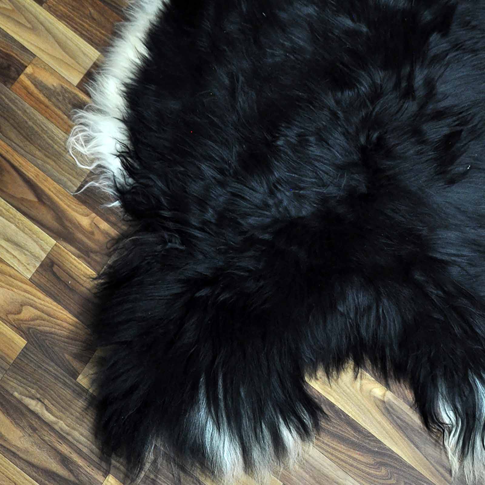 XXL ÖKO Island Schaffell schwarzbraun weiß 125x80 Unikat Krampus #8256