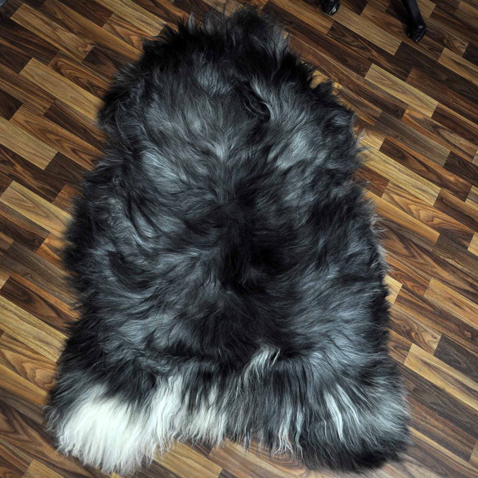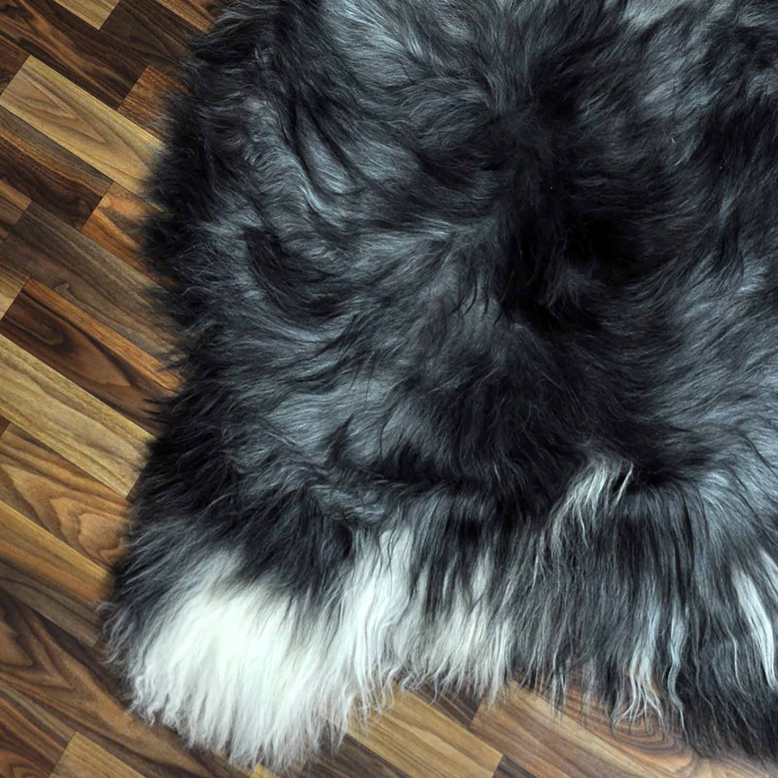 XXXL ÖKO Island Schaffell grau beige schwarzbraun 130x85 groß Teppich#9113
