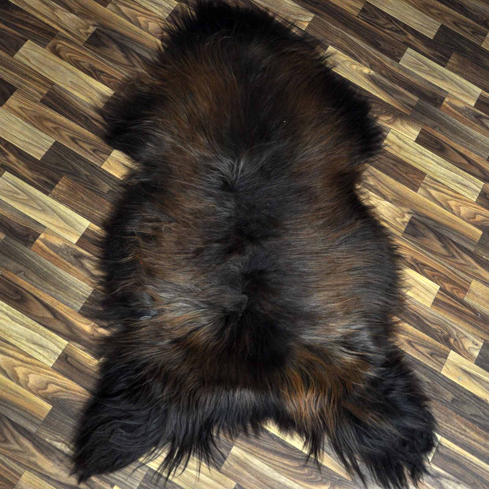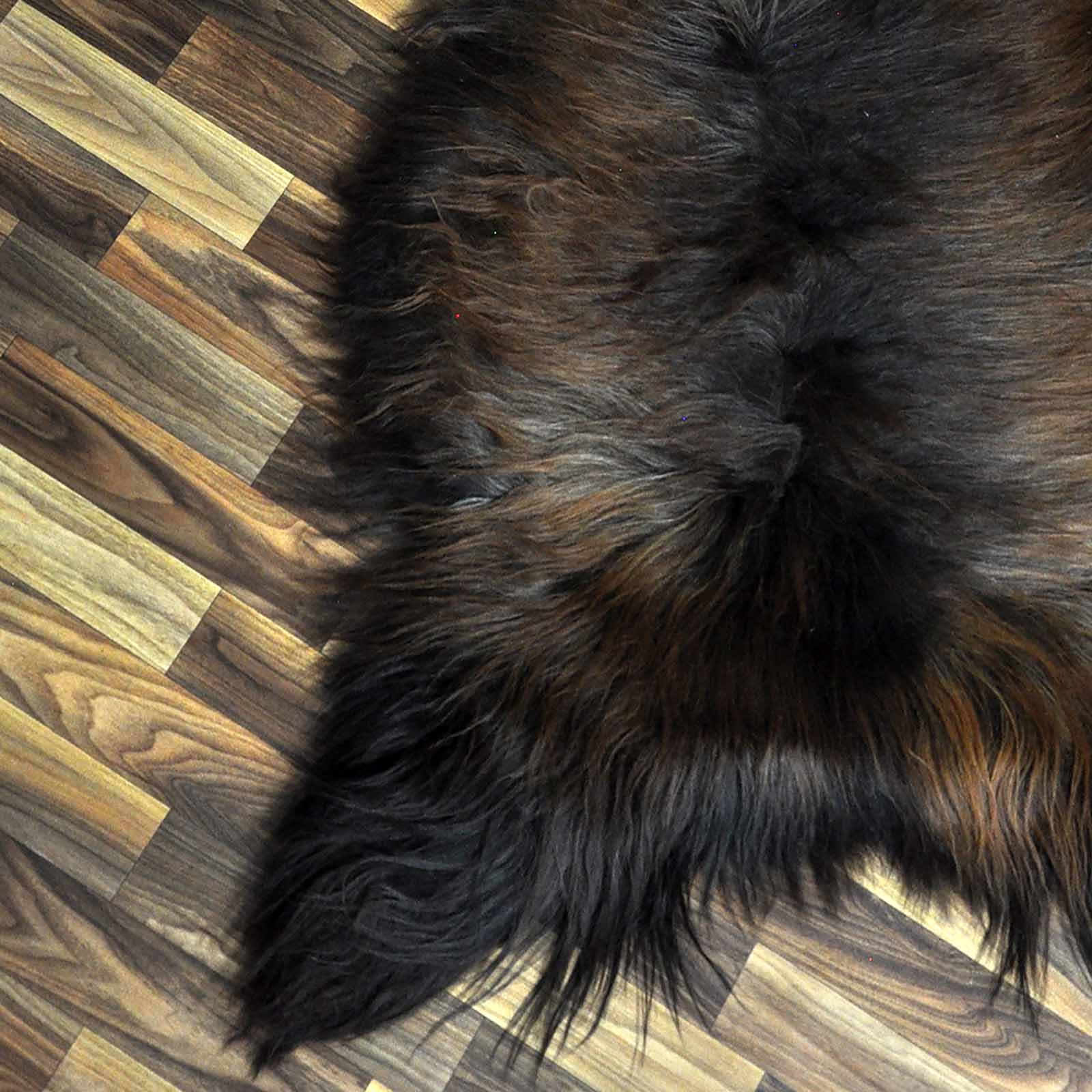 XXXL ÖKO Island Schaffell schwarz braun geflammt 130x75 Feuer Kamin #9643