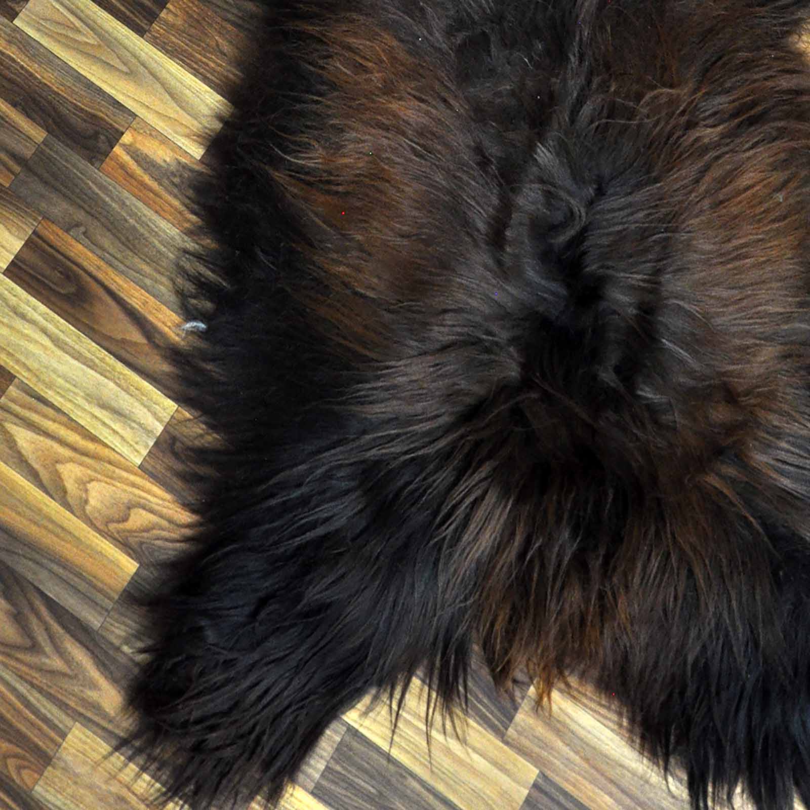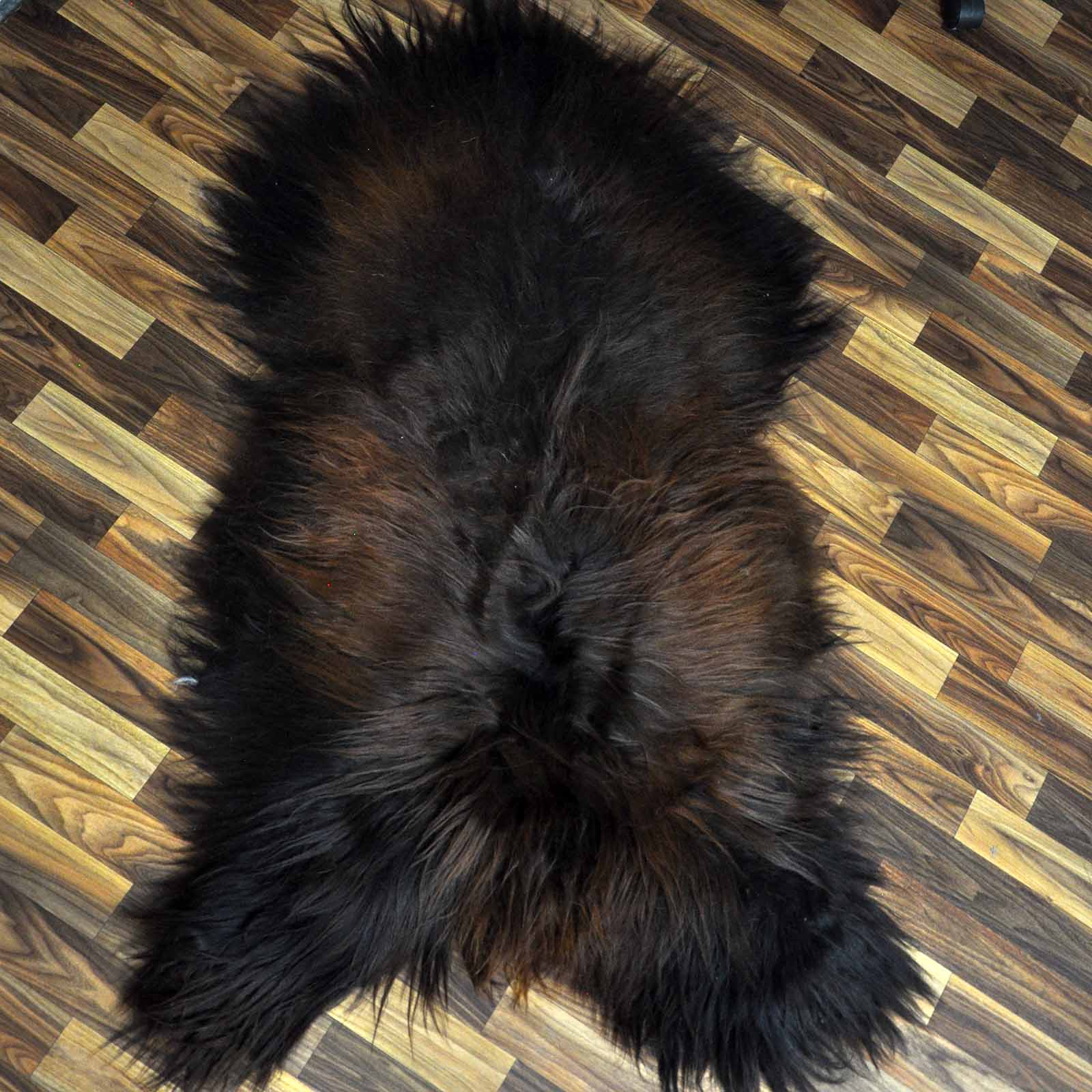 XXXL ÖKO Island Schaffell schwarz braun geflammt 130x80 Feuer Kamin #9635