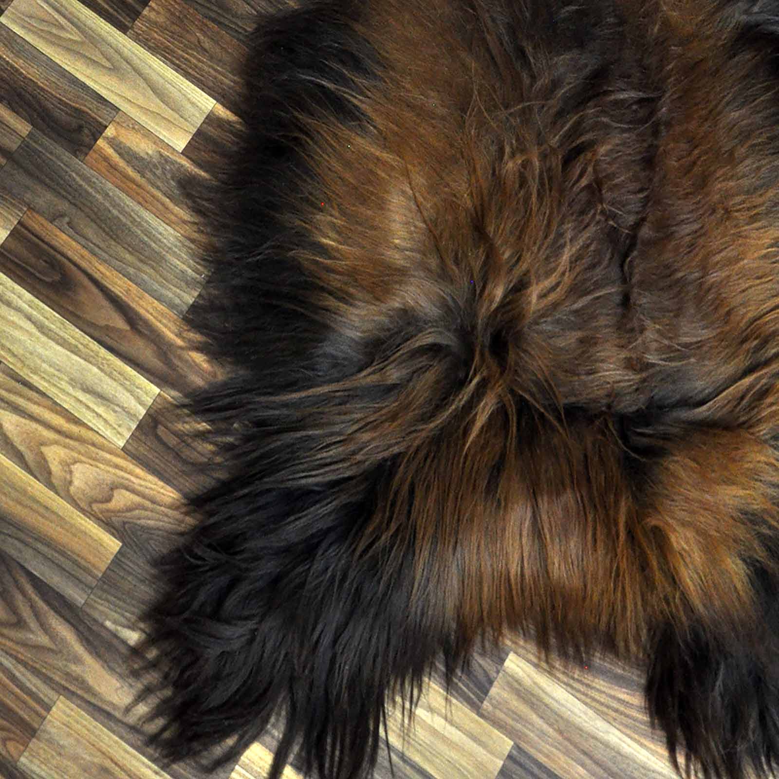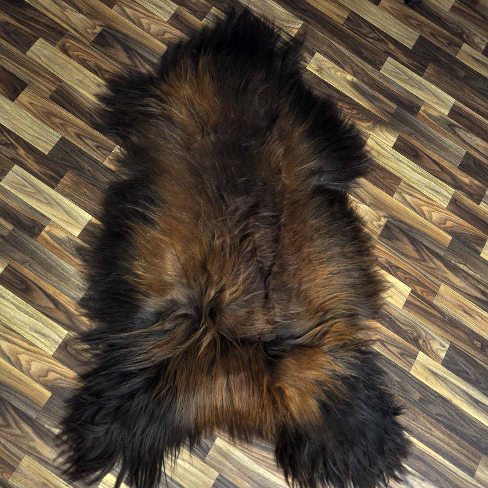 XXXL ÖKO Island Schaffell schwarz braun geflammt 130x80 Feuer Kamin #9639