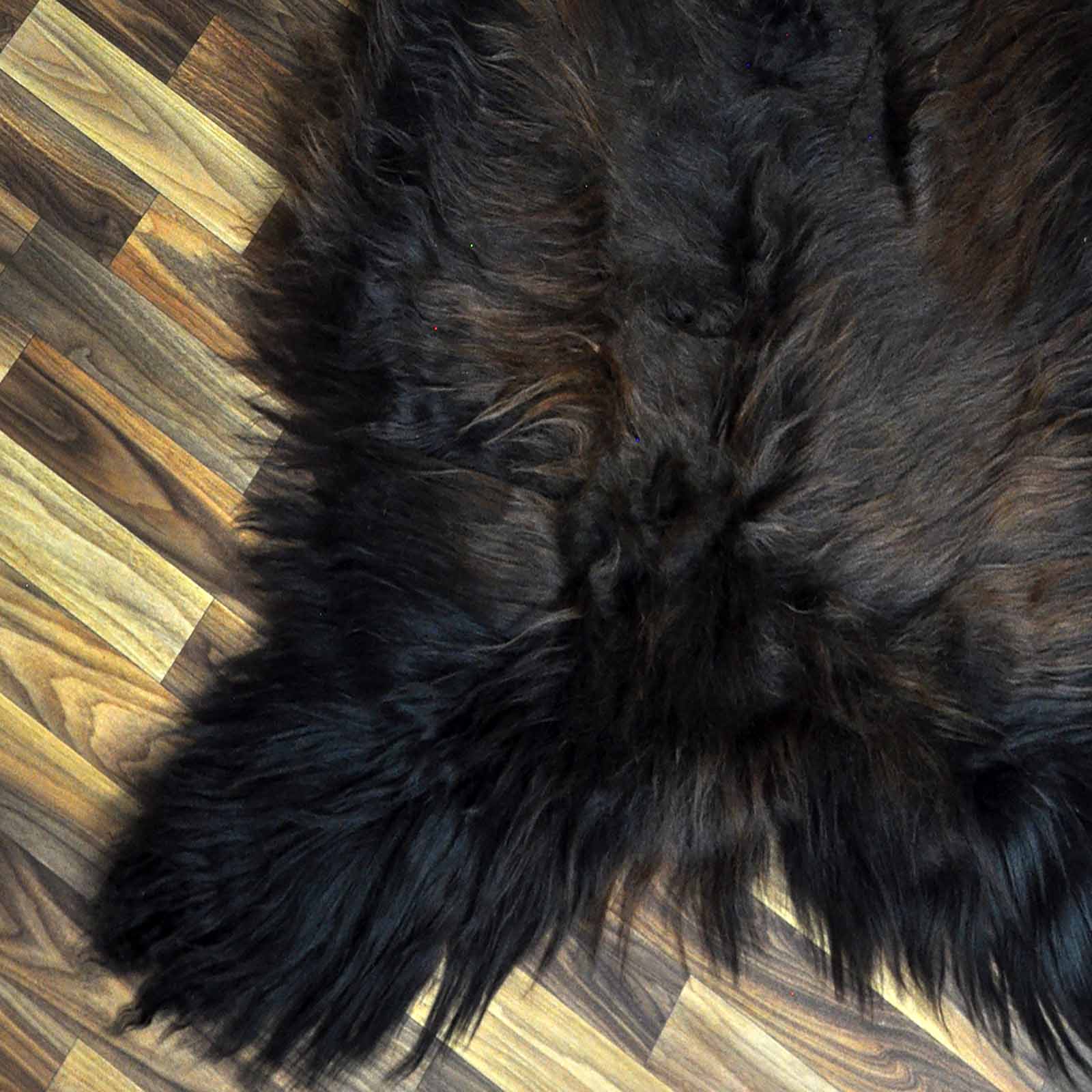 XXXL ÖKO Island Schaffell schwarz braun geflammt 130x80 Feuer Kamin #9647