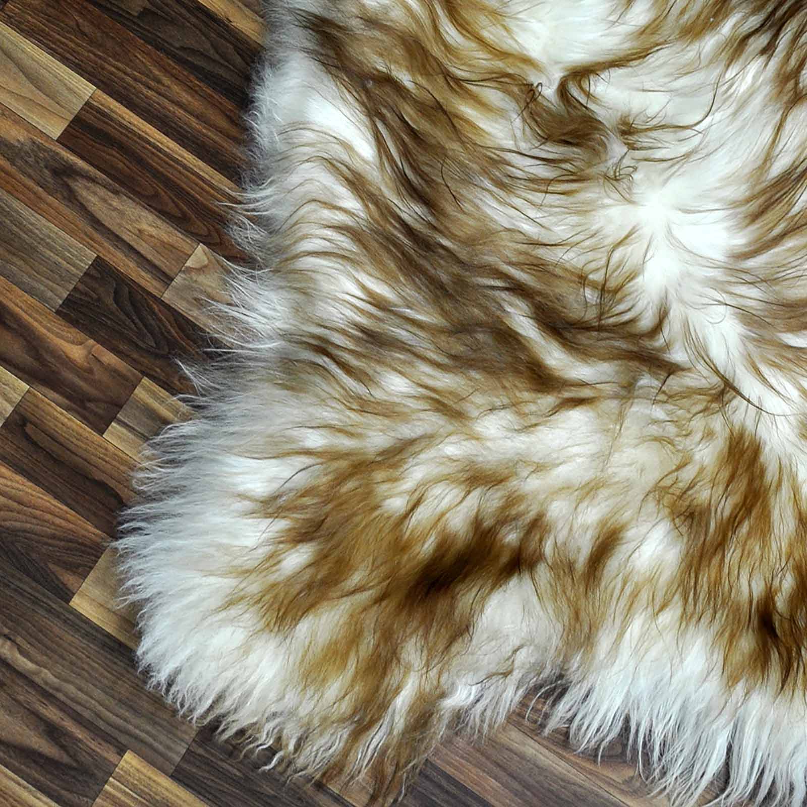XXXL ÖKO Island Schaffell weiß braun geflammt 135x80 Teppich #8844